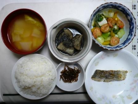 他:味噌汁、長芋のゴマ煮、エビと野菜の炒め物、いかなごのくぎ煮